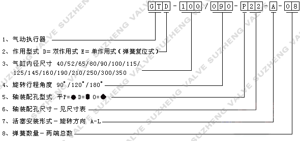 | 基本設計: | 氣動雙活塞執行器、型号 GTD=雙作用式、型号 GTE=單作用式(有🏃🏻♀️彈簧☠️返回)。 |
