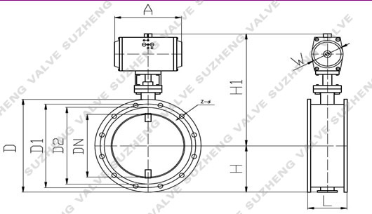 六、TD641W氣動通風蝶閥主要外形連接尺寸 單位:mm