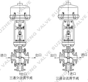 電動三通調節閥,一般情況是由381系列直行程電動執行機構和👼🏾三通調節閥體組成。電動執行機構為電子式一…體化結構,内有🤶🏾伺服放大器,輸入控制信👾号(4-20mADC或1-5VDC)及電源即可控制⛹🏻♀️閥門開度,達到😜對壓力、流量、液位、溫度等參數的調節。電動三通調節閥具有動作靈敏、連線簡單、流量大🧛🏽、體積小、調節精度高等特👨🦰點。控制精度和性能比DKZ型有明顯提高。電動三通調節閥具有調節精🔞度高,動作穩定可靠等優點。電動三✋通合流調節閥主要用于将兩種流🙉體混合成第三種流體⛹🏻♂️;電動三通分流調節閥主要用于将一股流體分成兩股流體。電動三通調節閥産品可代替🙂↕️兩台互為開關的單、雙座🧛🏾♀️調^節閥,用于液體、氣體、蒸汽等介質的調節與控制。